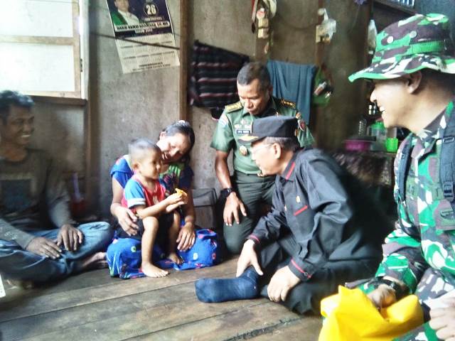 Dalam kesempatan itu wawali dan staf Ahli Kodam VI Mulawarman Kol Inf JXB Nunes memberrijan santuan dan paket kepada Rizki yang ikut menyimak pembicaraan wawali sambil makan kue dan manggut-manggut.