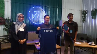 Diujung audiensi, wali kota yang begitu mendukung kegiatan jurnalis tersebut diberikan penghargaan berupa raket dan jersey bulu tangkis.