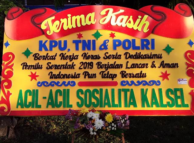 Apresiasi ini terlihat melalui karangan bunga ucapan terimakasih yang ada di Kantor KPU Provinsi Kalsel diantaranya Komunitas Acil-Acil Sosialita Kalsel, Barisan Emak-Emak Pecinta Mie Habang, Gasak Kalsel, Persatuan Paman Pentol Banjarmasin, Laskar Banua, Imam Suprastowo, Relawan Banua Bersatu, Komunitas Borneo, Gerakan Pemuda Ansor Kota Banjarmasin, Badko HMI Kalselteng, Warga Masyarakat Cinta Damai Banjarmasin, dan PHDI Kalsel.
