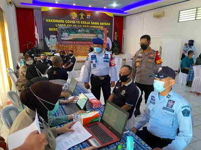 Kabid Dokkes Polda Kalsel Kombes Pol dr. Ubaidillah selaku Penanggung jawab kegiatan didampingi Kalapas Kelas II A Banjarmasin Porman Siregar saat memantau pelaksanaan vaksinasi mengatakan, kegiatan tersebut merupakan bentuk dukungan dalam menjalankan program Pemerintah.