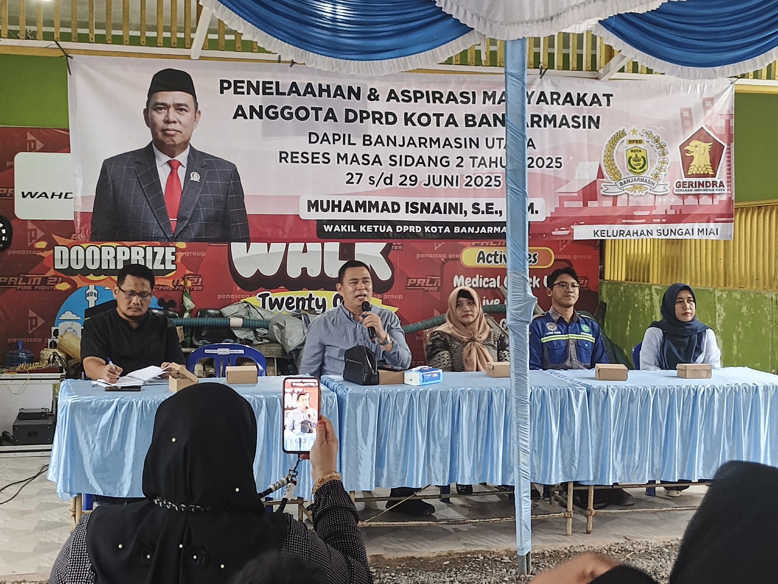 Anggota Dewan Perwakilan Rakyat Daerah (DPRD) Kota Banjarmasin, M Isnaini yang melakukan reses di jalan Cemara Ujung Blok IV, Banjarmasin Utara, menerima keluhan maayarakat terkait kondisi Fasilitas Umum (Fasum) yang harus diperbaiki.