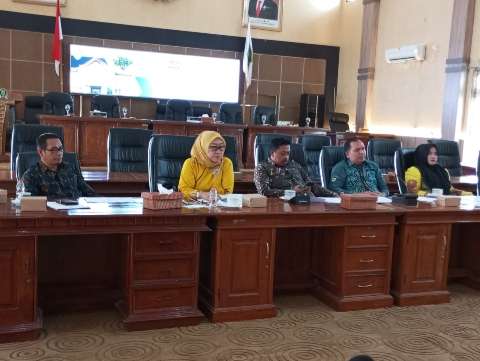 Kedatangan rombongan warga Desa Sumber rejeki Selasa (18/7) ke Gedung DPRD Balangan, disambut langsung Ketua DPRD Balangan Ahsani Fauzan, Wakil Ketua 1 Muhammad Ifdali dan Ketua Komisi I H.Rusdi. HY dan anggotanya di Aula sidang utama Sekretariat Dewan Balangan.