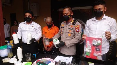 Dia diciduk oleh Jajaran Satres Narkoba Banjarmasin yang berhasil mengungkap produksi narkotika rumahan itu hingga digelar langsung Kapolresta Banjarkasin, Senin (11/7/2022) pagi.