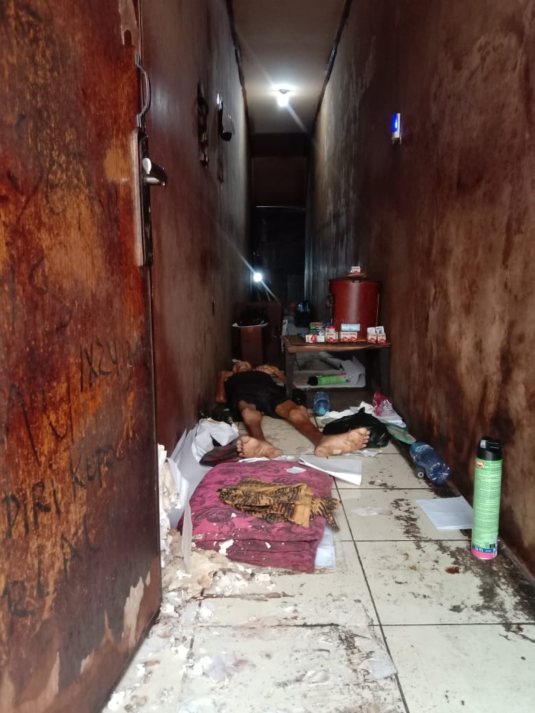 “Saat pintu terbuka ditemukan korban dalam keadaan telentang dengan menggunakan kaos warna hitam dan setelah dicek sudah dalam keadaan meninggal dunia (MD),”ujar Ketua RT 13 Sudarto.
