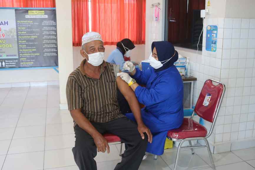 Pada kesempatan ini, tim kesehatan RSAU Sjamsudin Noor melaksanakan vaksinasi dengan jenis Sinovac.