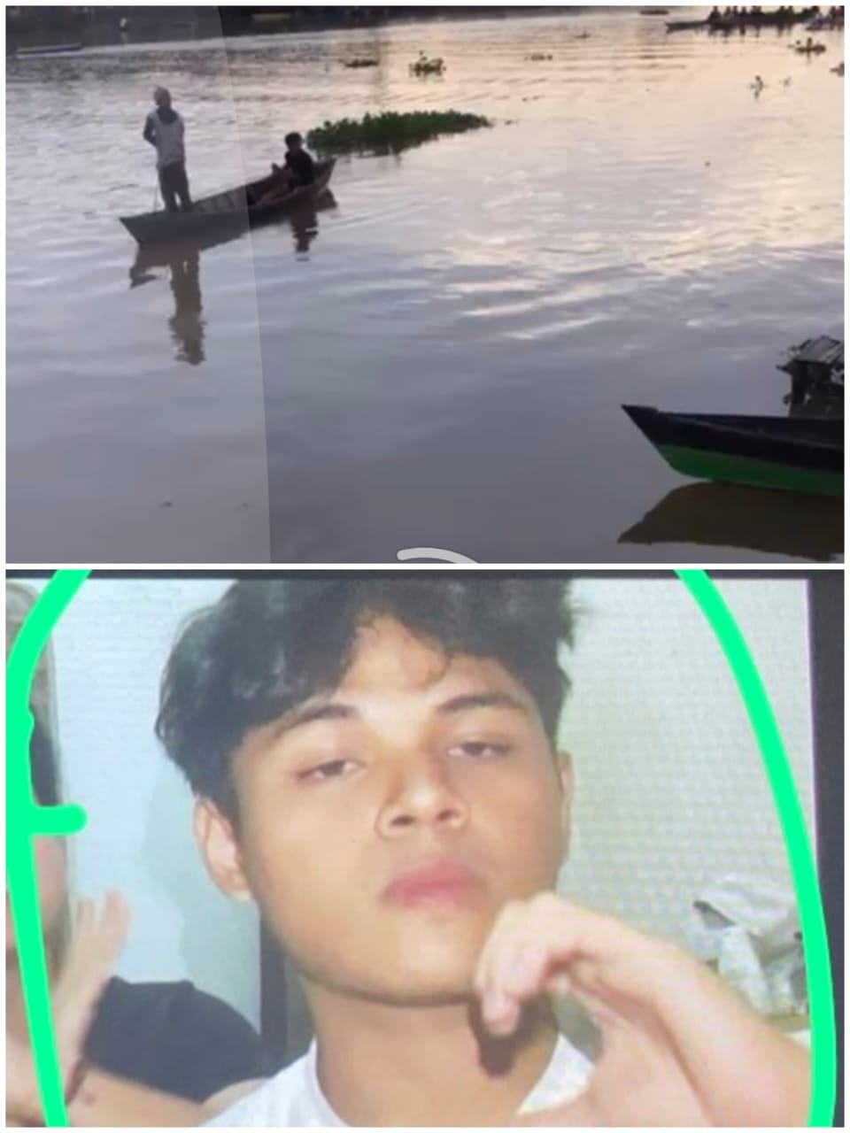 Di tempat batang atau kayu papan apung terdapat kaus hitam, sandal, dan rokok tepi sungai diduga milik korban. Warga setempat dan relawan pun mencoba melakukan pencarian dengan menggunakan perahu kayu atau jukung.
