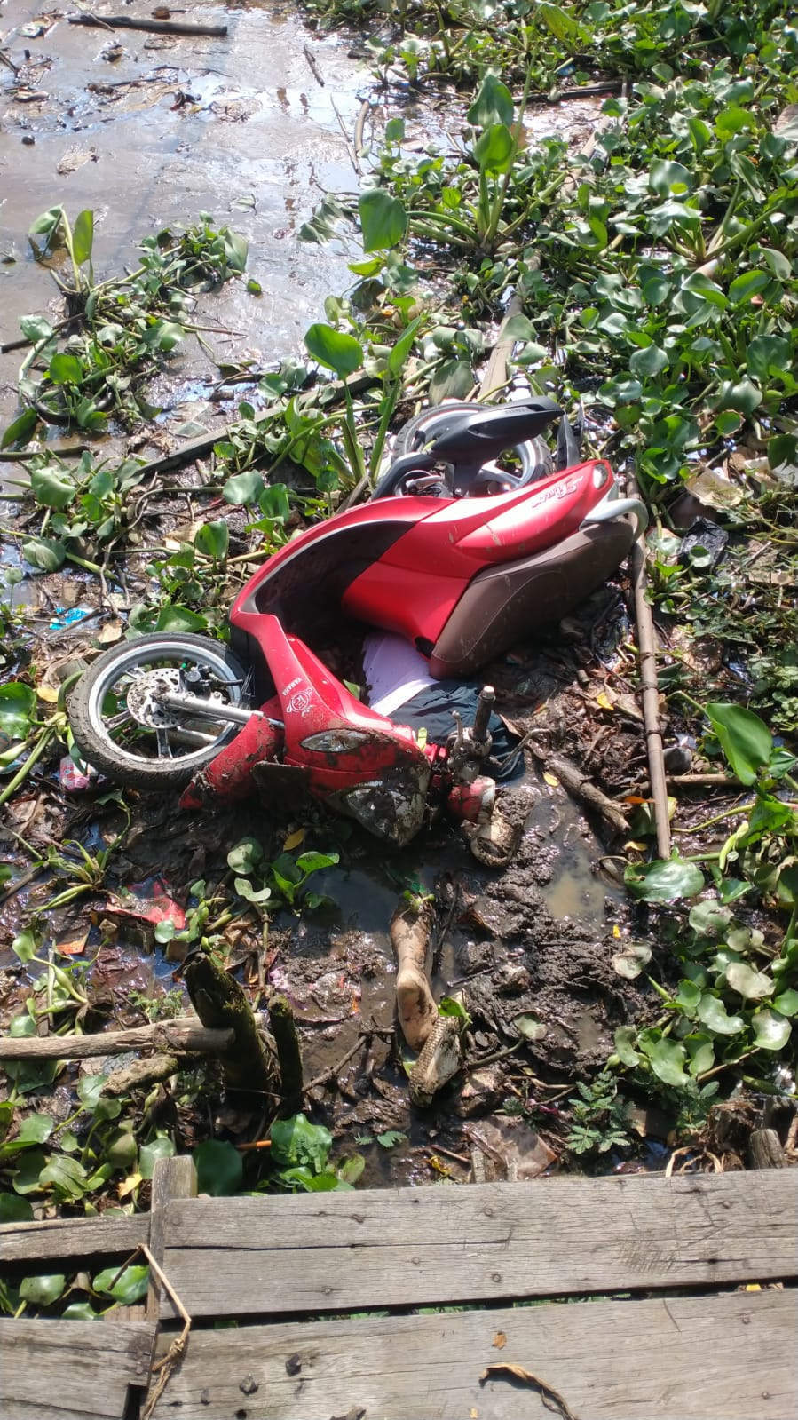Banjarmasin, BARITOPOST.CO.ID – Warga Jalan Tanjung Berkat Teluk Tiram Ujung Kecamatan Banjarmasin Barat digegerkan dengan temuan mayat bersama motornya Honda Scoopy DA 4583 AW warna merah, Rabu (6/11/2024) sore sekitar pukul 15.30 Wita.