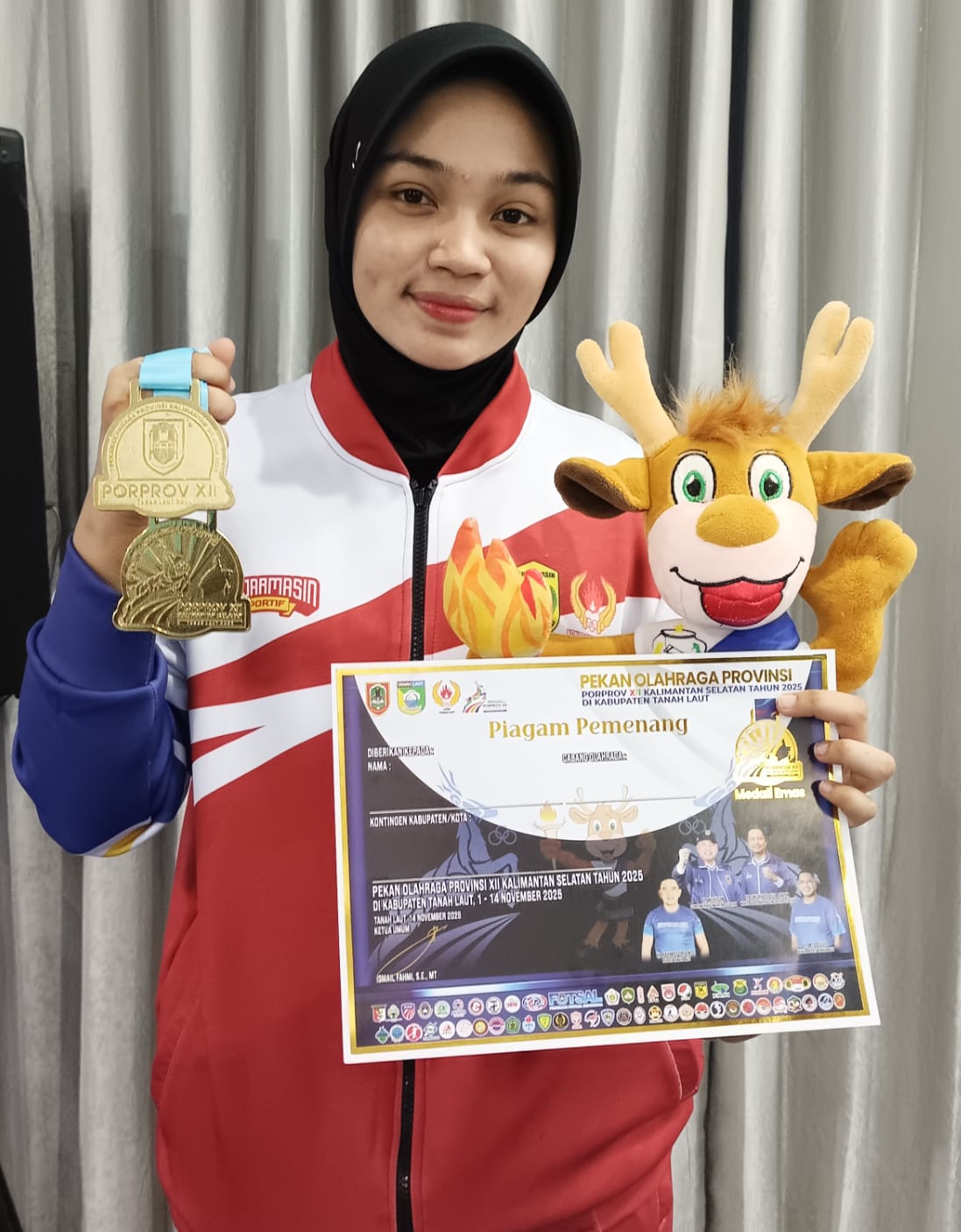 Sama seperti pada Porprov XI 2022 di Kandangan, Hulu Sungai Selatan (HSS), mahasiwi Fakultas Ekonomi dan Bisnis Prodi Ekonomi Pembangunan S2 ULM Banjarmasin itu, mendulang dua keping medali emas untuk kontingen Porprov Banjarmasin.
