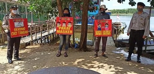 Personel Polsek Bajarbaru Timur merupakan jajaran Polres Banjarbaru dipimpin Ka SPKT Aiptu Wayan Rebek, melaksanakan patroli dan sambangi warga untuk memberikan imbauan protokol kesehatan, di Obyek Wisata Danau Seran Kelurahan Palam Kecamatan Cempaka Kota Banjarbaru, Sabtu (8/8/2020) sekitar pukul 11.00 Wita.