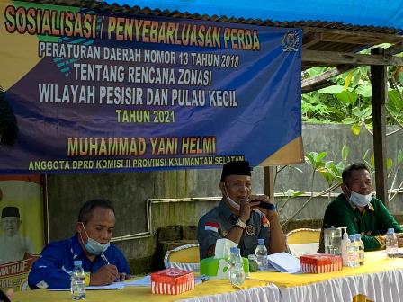 Batulicin, BARITO – Anggota Komisi II DPRD Provinsi Kalimantan Selatan Muhammad Yani Helmi, melaksanakan Sosialisasi dan Penyebarluasan Peraturan Daerah (Perda) Nomor 13 Tahun 2018 tentang Rencana Zonasi Wilayah Pesisir dan Pulau Kecil bertempat di Kabupaten Tanah Bumbu, Jumat (26/2/2021).