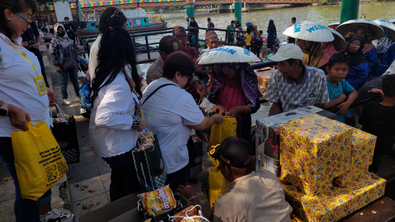 Apresiasi yang diberikan oleh Yayasan Wasaka berupa bantuan paket sembako serta sejumlah uang tunai yang diserahkan kepada acil-acil yang berhak menerima di lokasi Pasar Terapung tersebut.