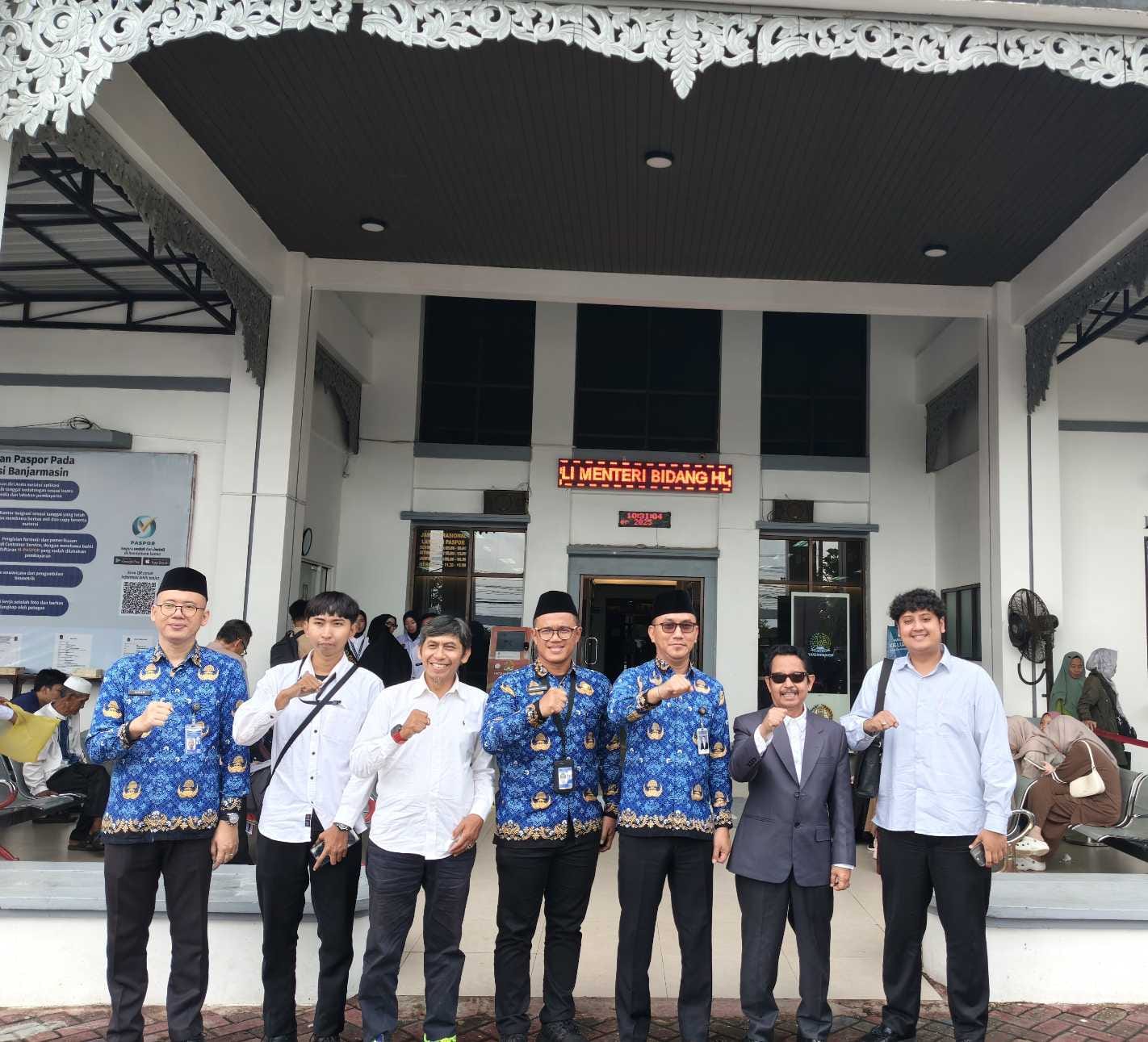 Kedatangan rombongan disambut Kepala Kantor Imigrasi Kelas I TPI Banjarmasin, Yoga Aria Prakoso Wardoyo, S.E., M.M., didampingi Kasubag TU Muhammad Haris, dalam suasana silaturahmi di kantor Imigrasi Banjarmasin, Senin (22/12/2025).