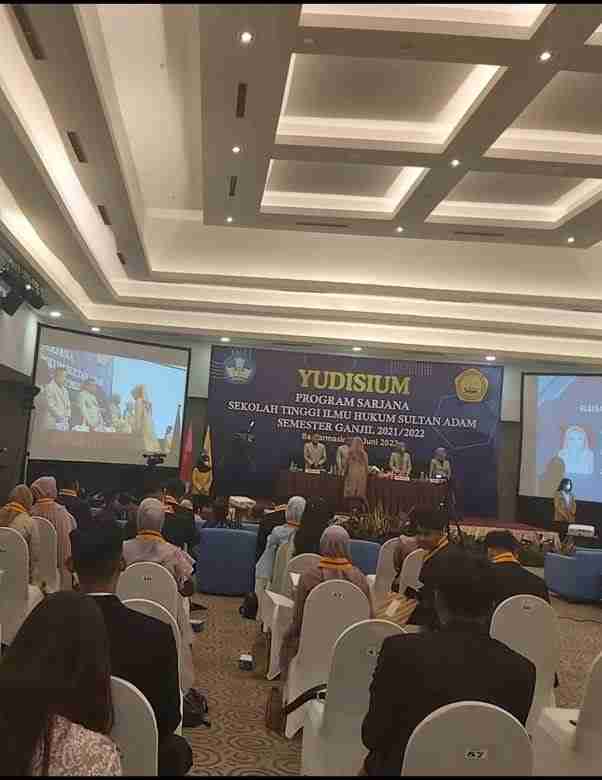 Yudisium Program Sarjana STIHSA semester ganjil 2021/2022 tersebut dihadiri Ketua Yayasan Pendidikan Tinggi Ilmu Hukum Indonesia (YPTIHI) STIH Sultan Adam, Ir Fachrur Rozy, seluruh dosen, tenaga kependidikan dan senat mahasiswa tersebut.