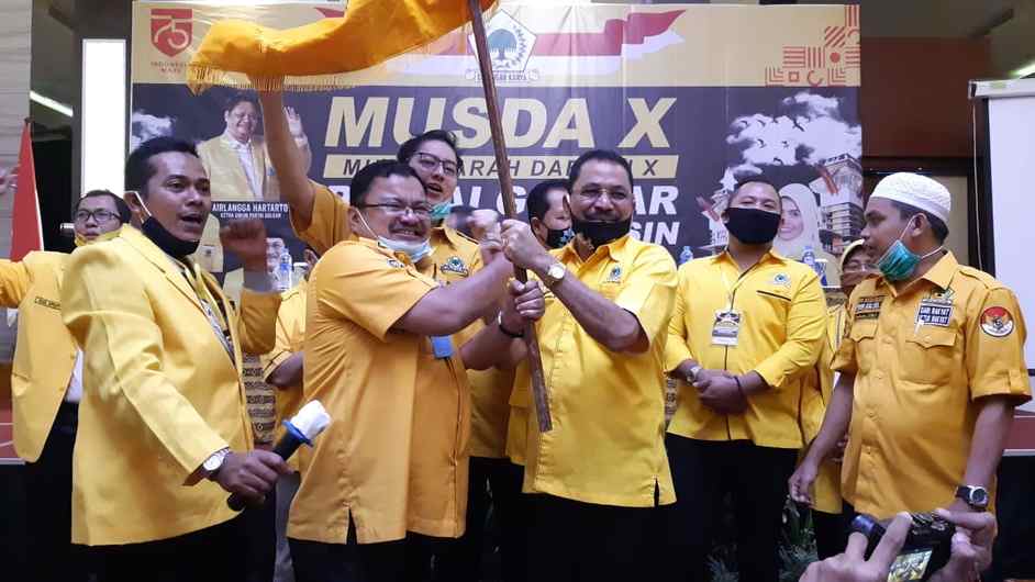 Banjarmasin, BARITO – Ketua DPD Partai Golongan Karya (Golkar) Kota Banjarmasin H Yuni Abdi Sulaiman yang terpilih secara aklamasi dalam pelaksanaan Musyawarah Daerah (Musda) ke-X Tahun 2020 bertempat di Hotel G’Sign Banjarmasin berjanji siap memenangkan pasangan calon Walikota Banjarmasin dan calon Wakil Walikota Banjarmasin, Hj Ananda-Mushaffa Zakir yang diusung Partai Golkar pada Pemilihan Kepala Daerah (Pilkada) Kota Banjarmasin 9 Desember 2020 mendatang. Putera almarhum HA Sulaiman HB itu bahkan menyatakan siap kembali membawa kejayaan partai berlambang pohon beringin ini pada Pemilihan Umum Legislatif (Pileg) 2024.